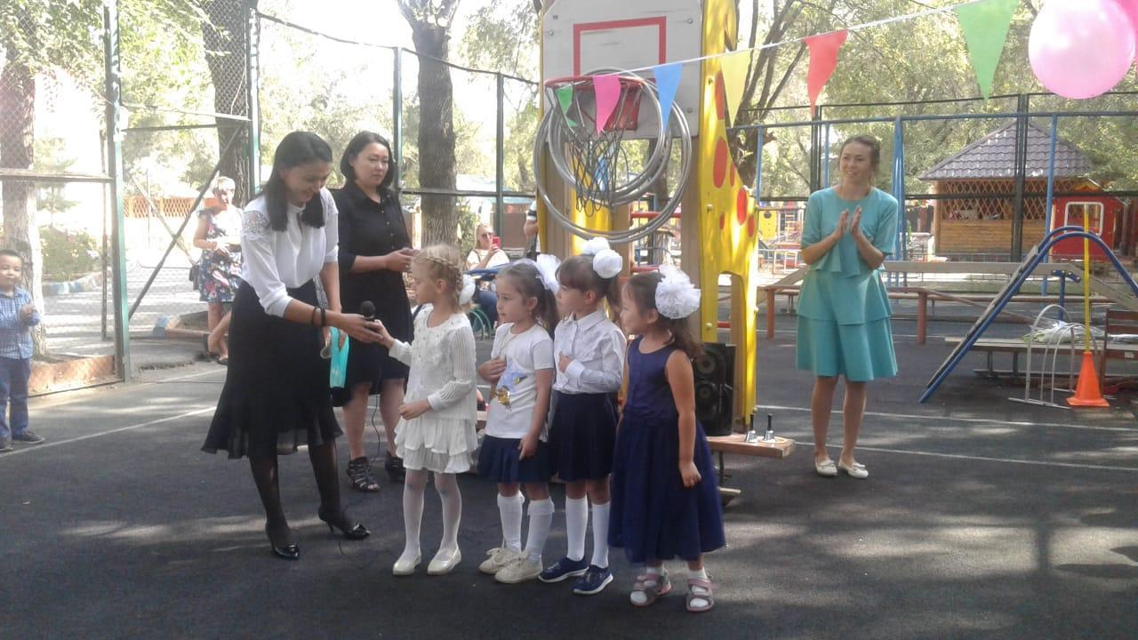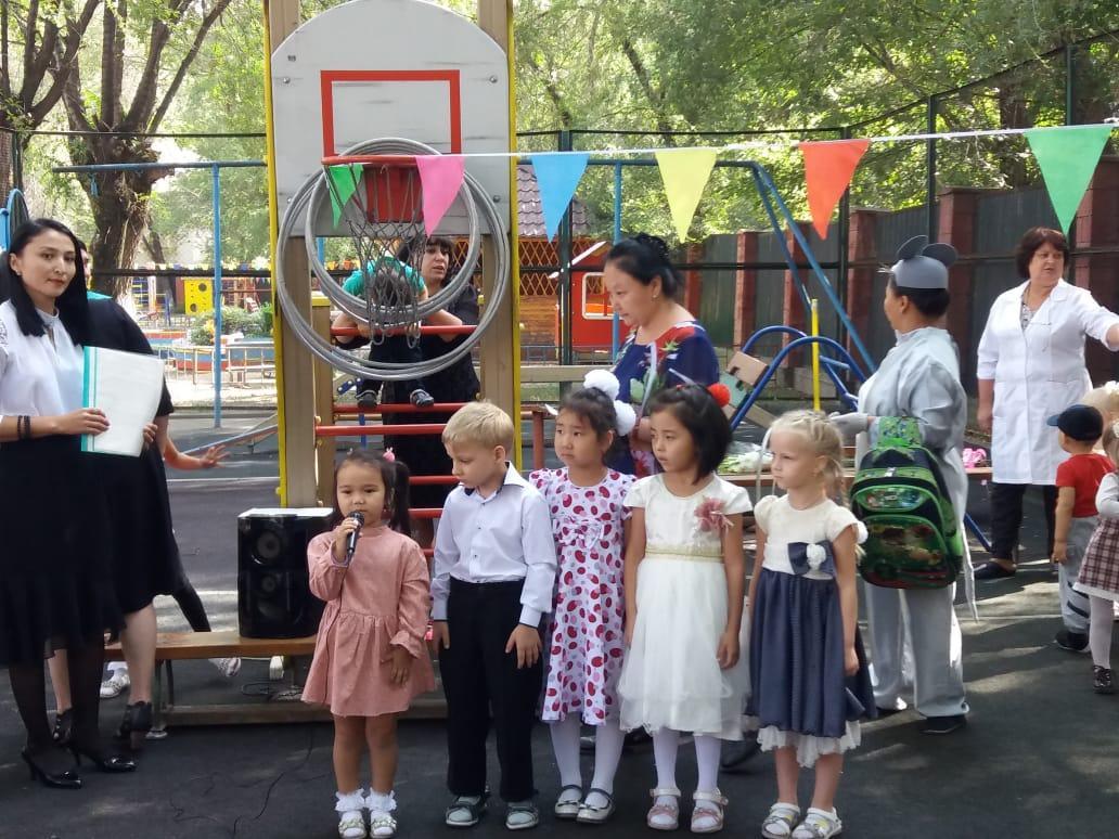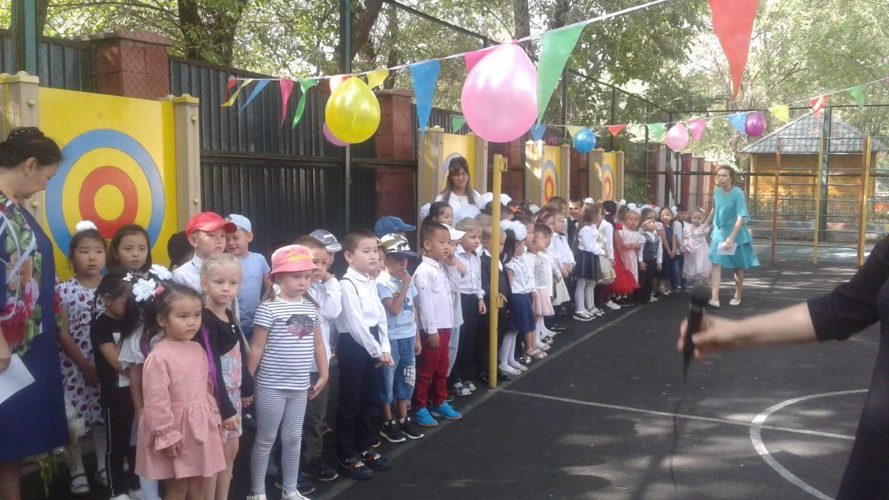 Цели и задачи: показать детям общественную значимость праздника – День знаний; доставить радость, создать веселое праздничное настроение. Развивать самостоятельность и инициативу, художественно – эстетический вкус; воспитывать аккуратность, дружелюбие и заботливое отношение к людям.
